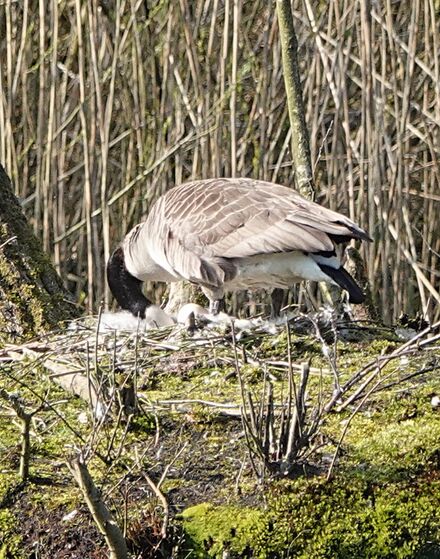 In diese tiefe Kuhle hineinsehen kann man nicht. Brüten scheint also auch mit ein paar Geheimnissen verbunden zu sein. Aber ich frage mich kurz, ob den Gänseembryonen im Ei bei dem Gedrehe schwindlig